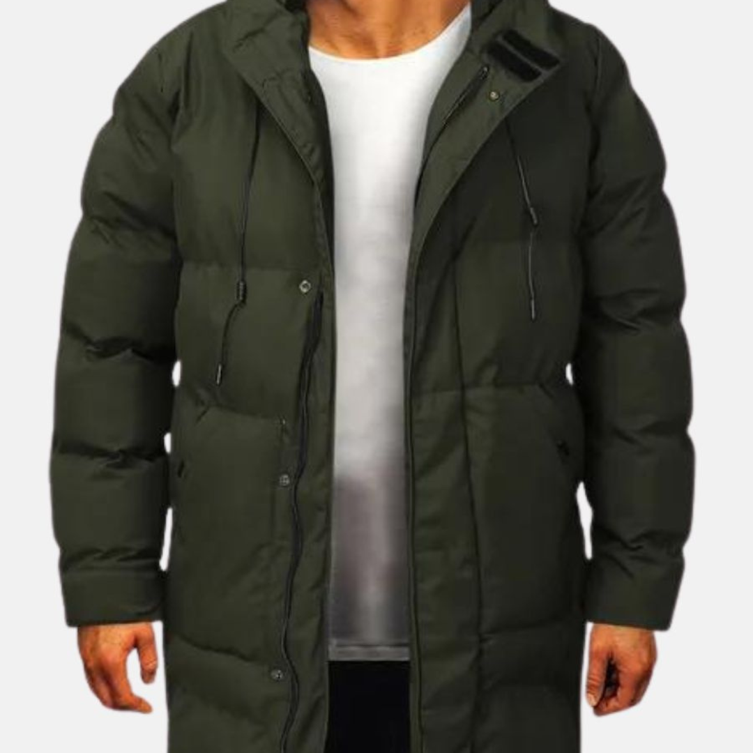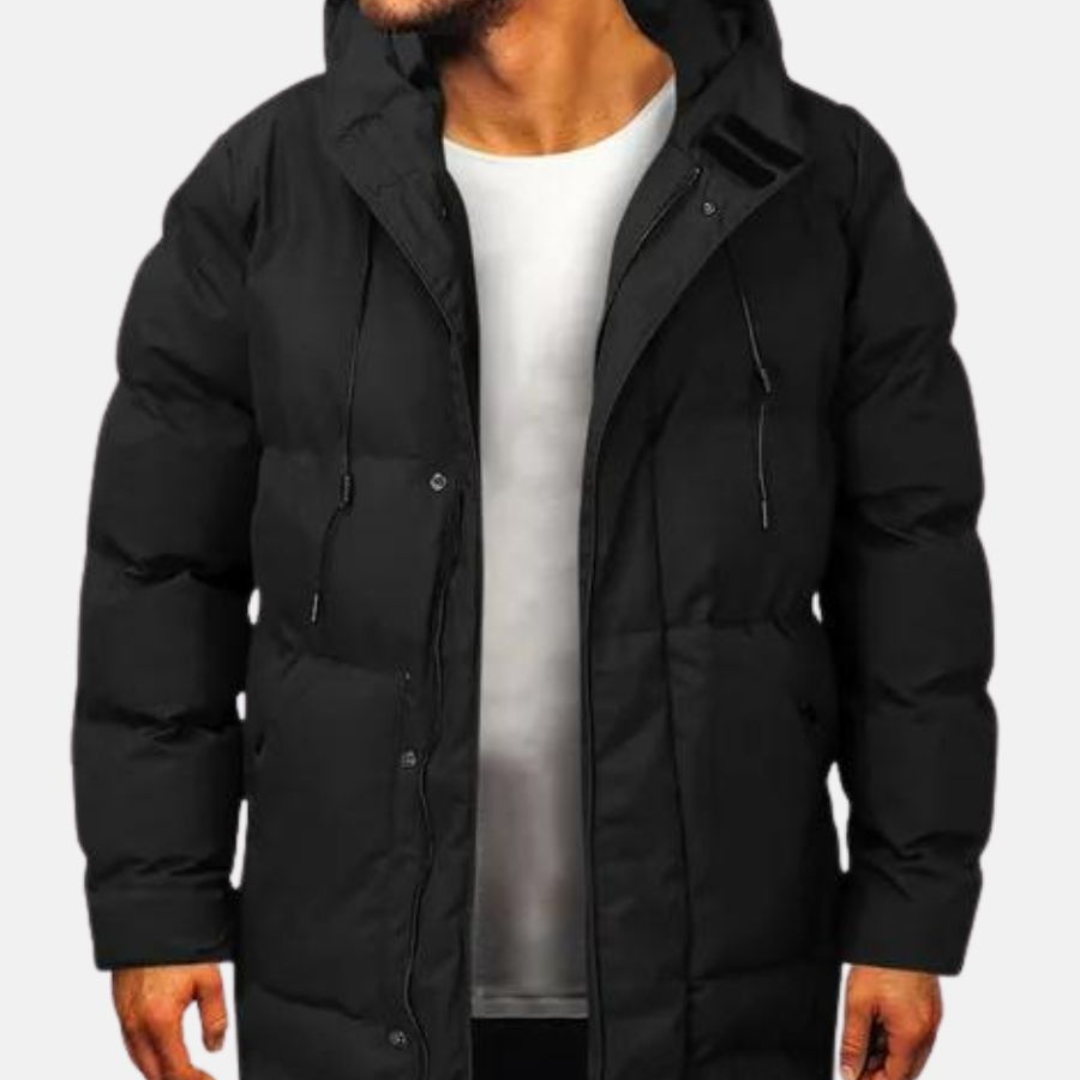 The Lennart men’s puffy parka with hood is designed to keep you warm and stylish throughout the winter. With its thick insulation and practical hood, it’s your reliable companion against cold winds. A versatile piece that pairs well with casual and smart looks alike.